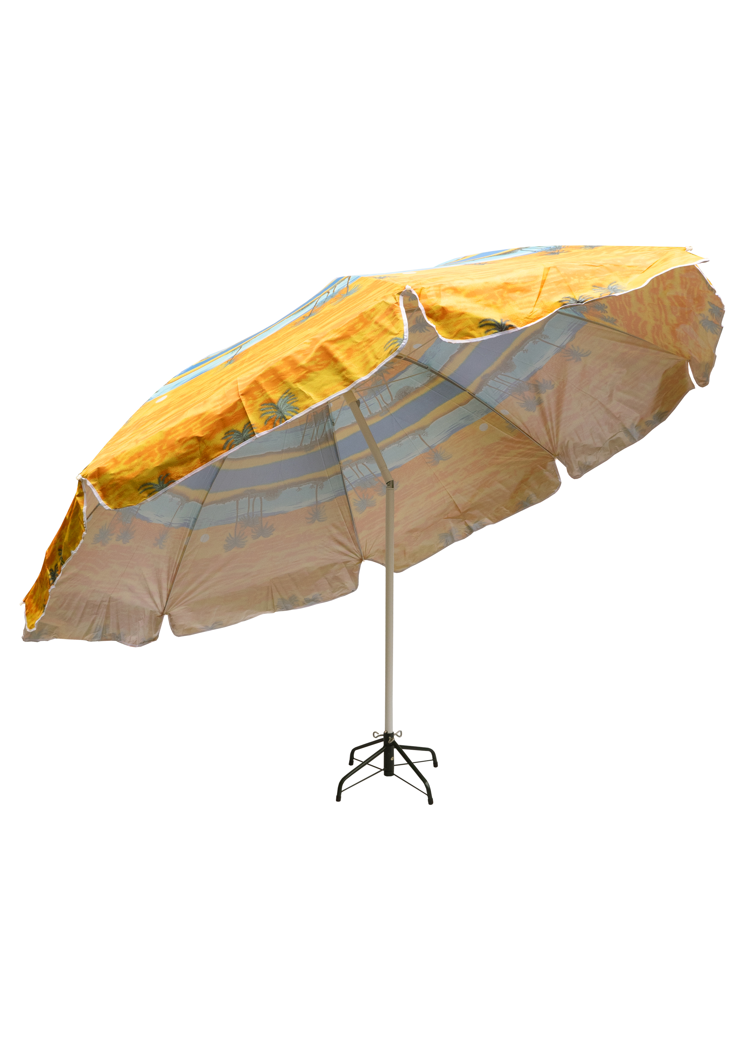 Зонт пляжный фольгированный (170 см в диаметре) 12шт/упак - надежное укрытие от солнечных лучей. Качественный металлический карскас с наклоном. Купол пляжного зонта выполнен из водонепроницаемого полиэстера, с внутренней стороны купол фольгирован, поэтому солнечные лучи отражаются. В раскрытом виде размер купола 1,7 метра. В ассортименте 4 расцветки